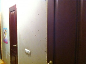 коридор и кухня квадратные, также произведено выравнивание стен гипсокартоном (осталось наклеить обои).